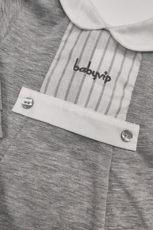 Completo 2 pezzi in cotone Jersey elasticizzato con inserti in tela rigata e ricamino babyvip