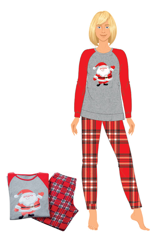 Pigiama donna in caldo cotone con maniche raglan, stampa e pantalone scozzese