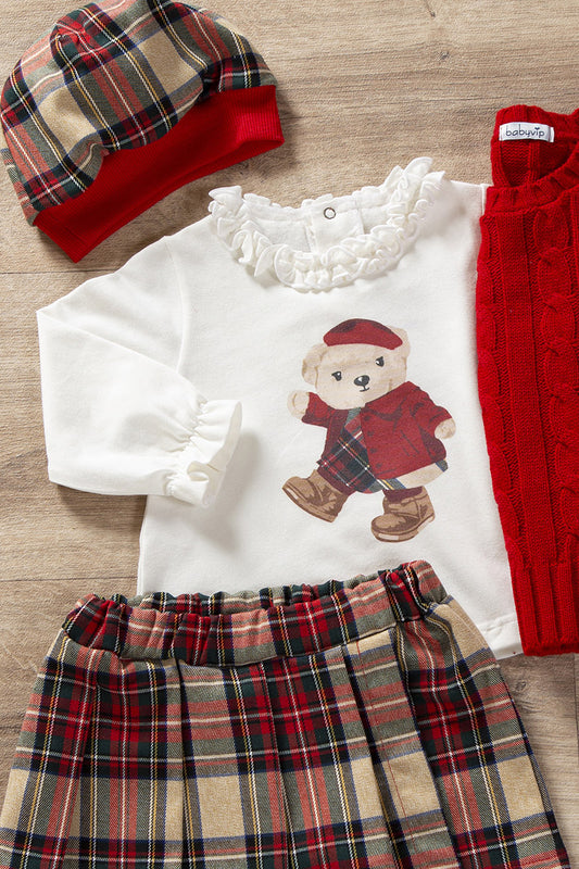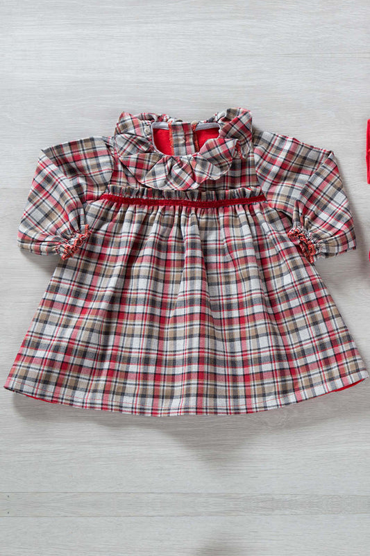 Vestitino in flanella scozzese con balza allo scollo maniche a sbuffo e taglio con rouches