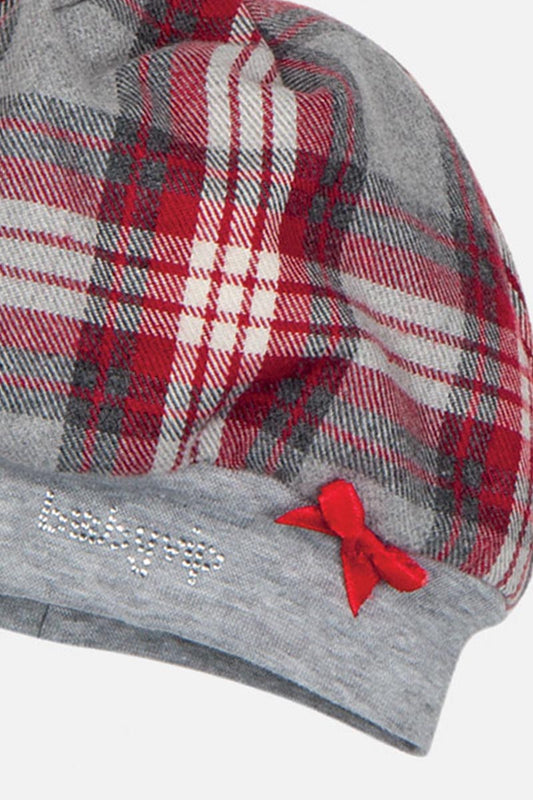 Baschetto in cotone fantasia a quadri tartan con strass e Fiocchettino