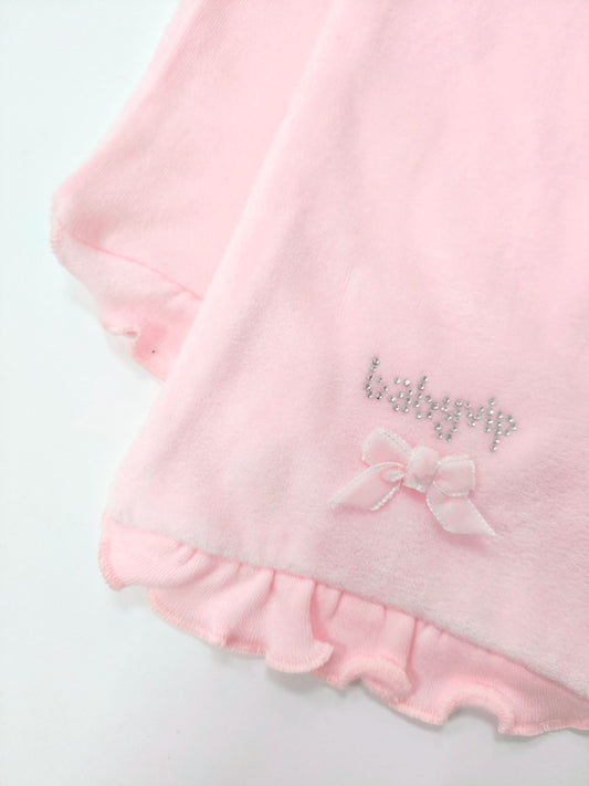 Vestaglia bimba in pile con strass e nastrino in contrasto coordinato