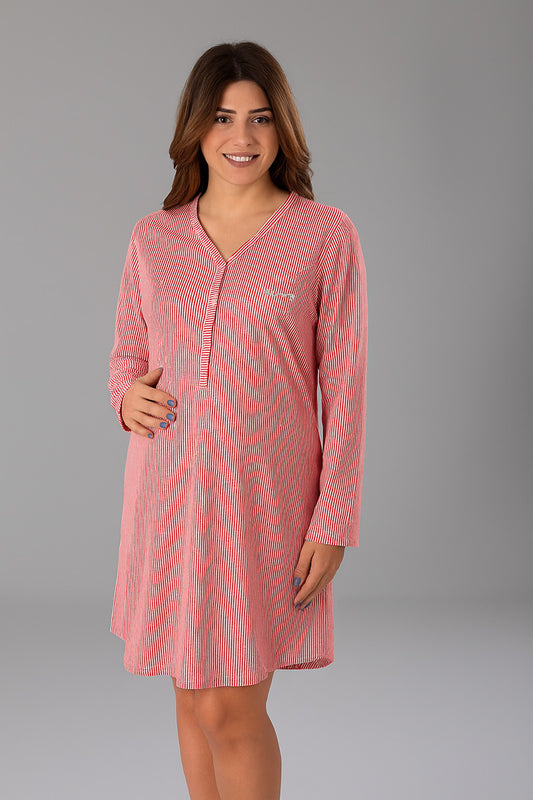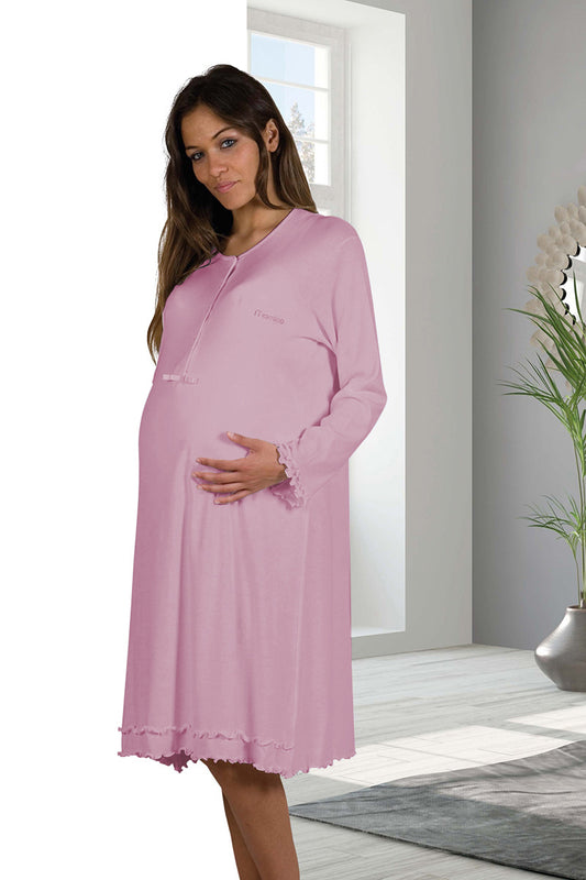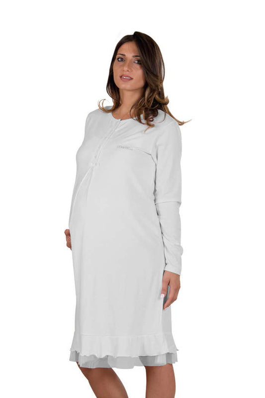 Camicia da notte manica lunga premaman modello serafino con profili in raso