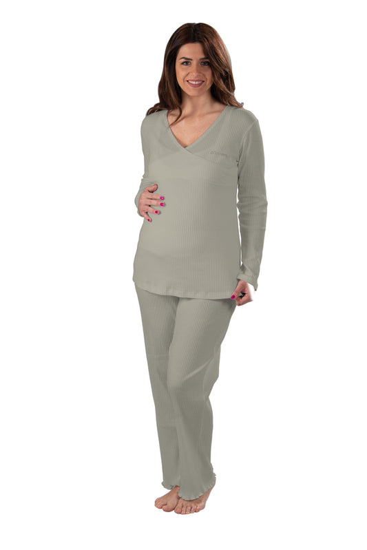 Pigiama pre-post parto manica lunga con taglio incrociato