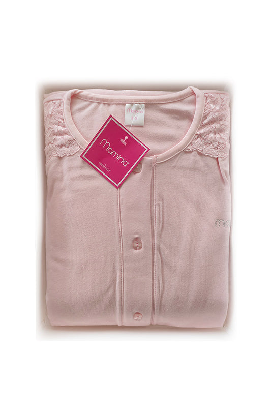 Pigiama clinico pre-post parto manica lunga in cotone con inserti in pizzo