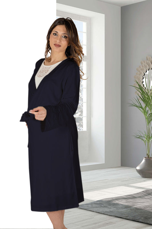 Camicia da notte manica lunga premaman scollo a V con profili in raso