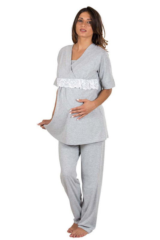 Pigiama pre-post parto mezza manica mod. serafino e pantalone con fascia in vita