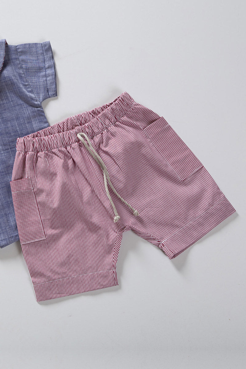 Bermuda in tela di cotone rigato con tasconi e laccetto in tessuto