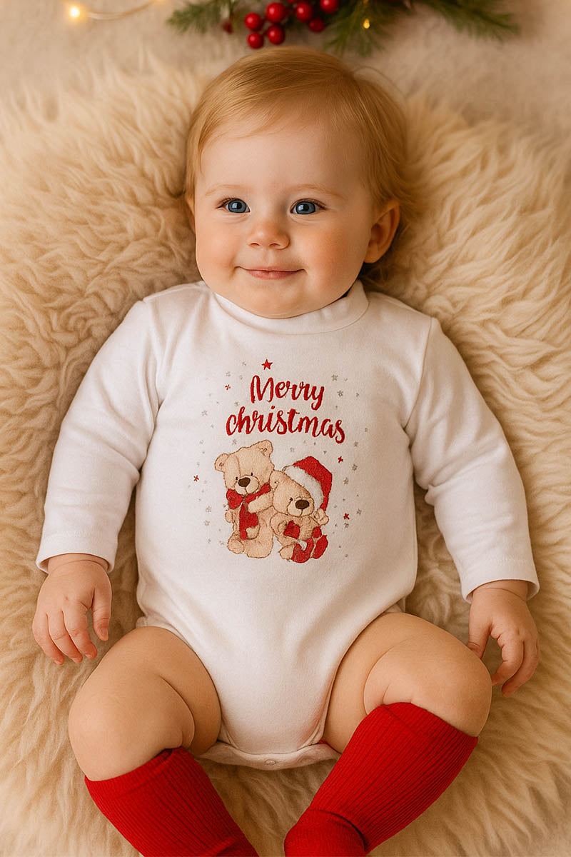 Body a lupetto manica lunga in cotone con stampe natalizie