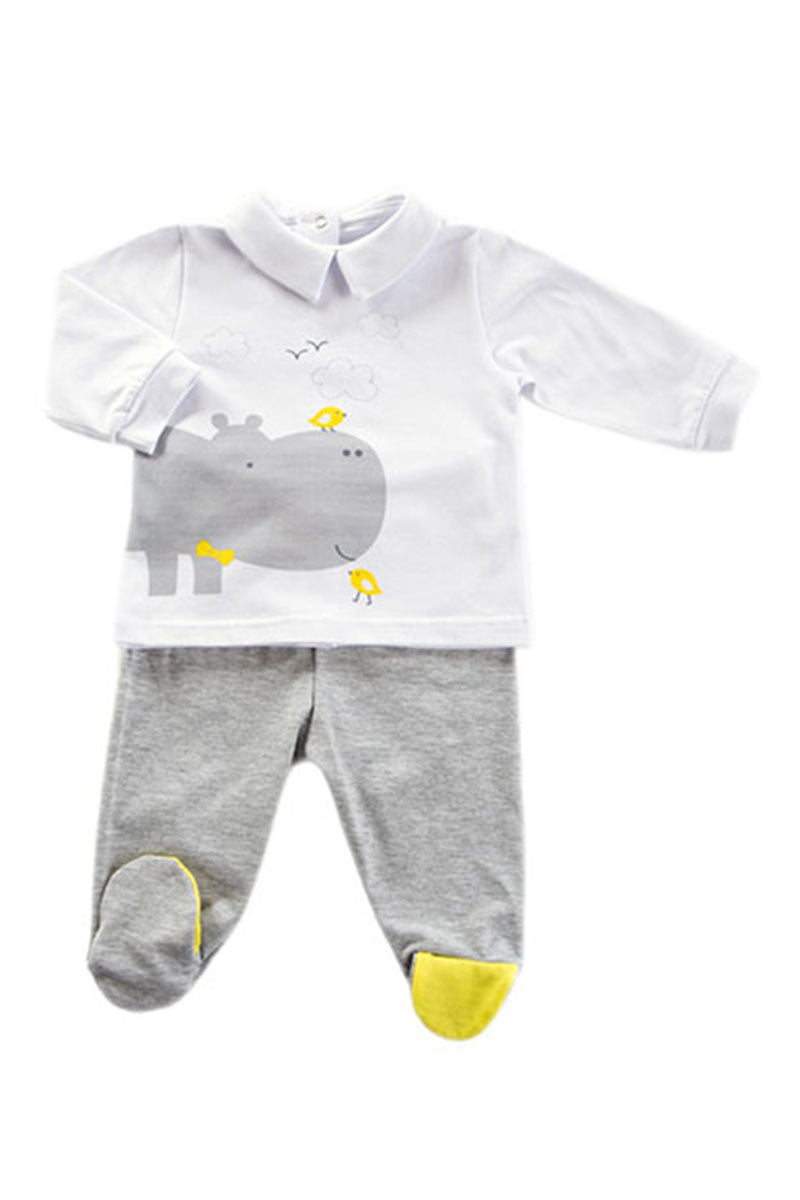 Completo 2 pezzi in cotone elasticizzato con stampa ed insertI in contrasto