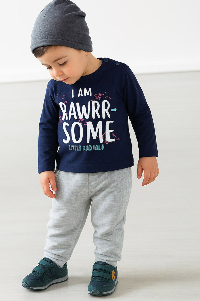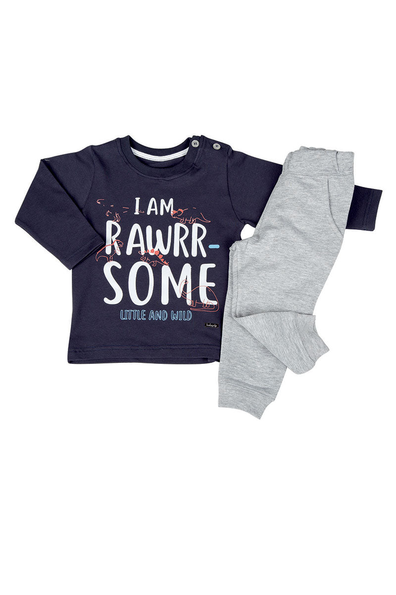 Completo 2 pezzi in felpa garzata elasticizzata con stampa e pantalone con tasche