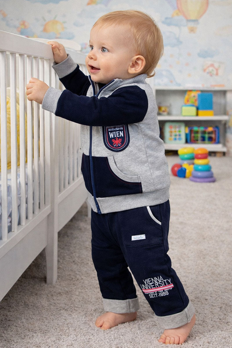 Completo in felpa garzata elasticizzata con scudetto e stampa sul pantalone