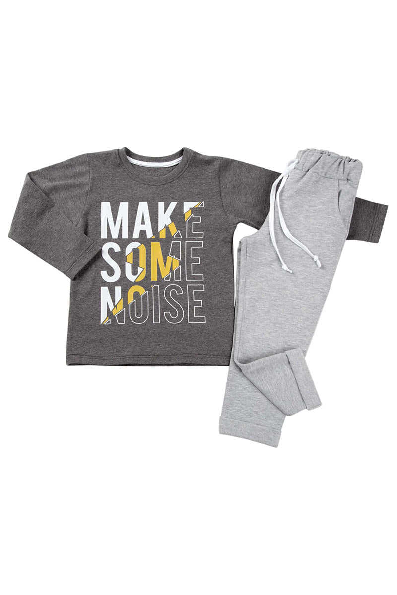 Completo in felpa garzata elasticizzata con stampa e pantalone con tasche