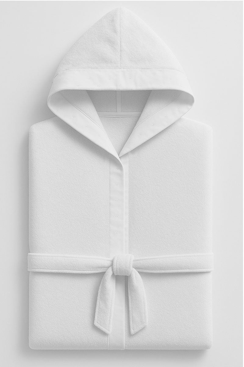 - Accappatoio con cappuccio in spugna di puro cotone morbido ed assorbente