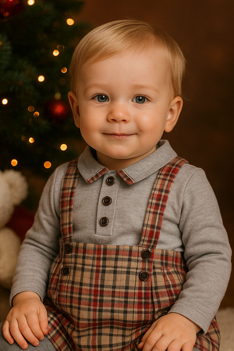 Body a camicia in cotone elasticizzato garzato con colletto, profilo in tessuto scozzese e bottoncini
