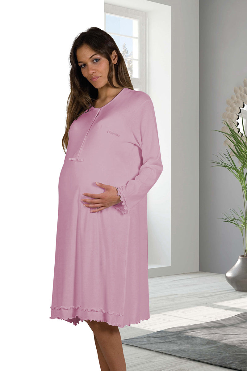 - Camicia da notte studiata per accompagnare le mamme durante la gravidanza e l’allattamento, con le sue rifiniture adattate per accogliere delicatamente la pancia;