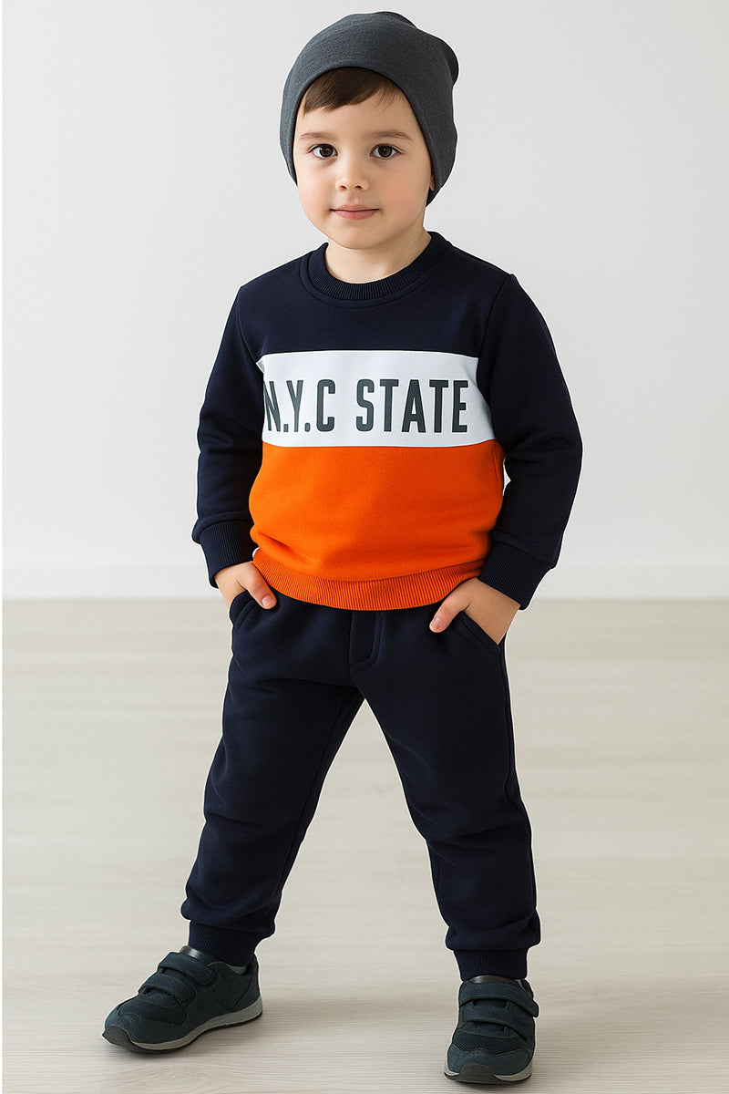 Completo in felpa garzata con tagli e stampa e pantalone con tasche