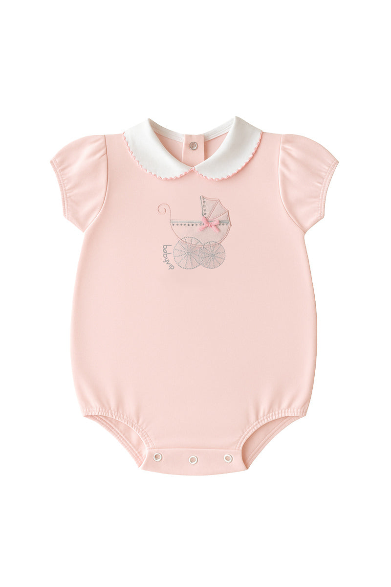 Pagliaccetto mezza manica in cotone con ricamo e strass