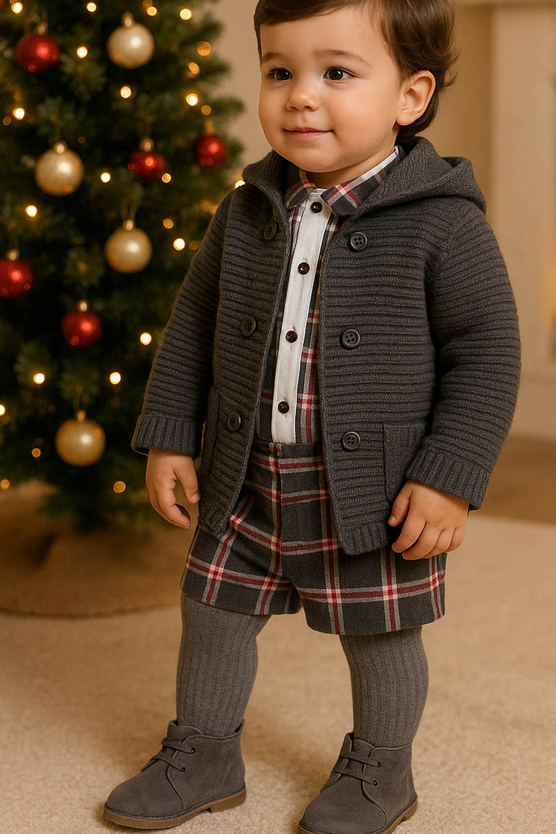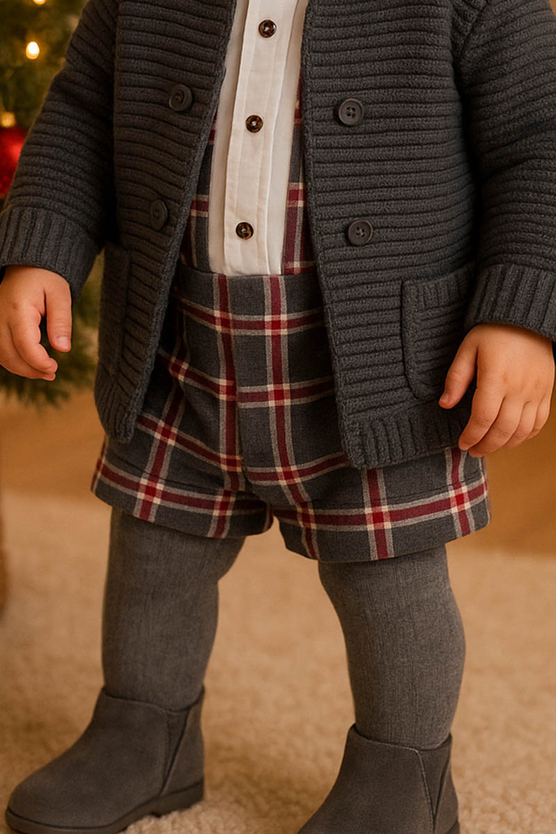 Bermuda in flanella a quadri con pencee bottoni applicati