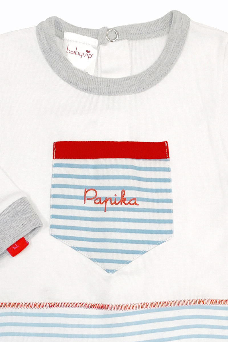 Tutina manica lunga in cotone rigata con stampa