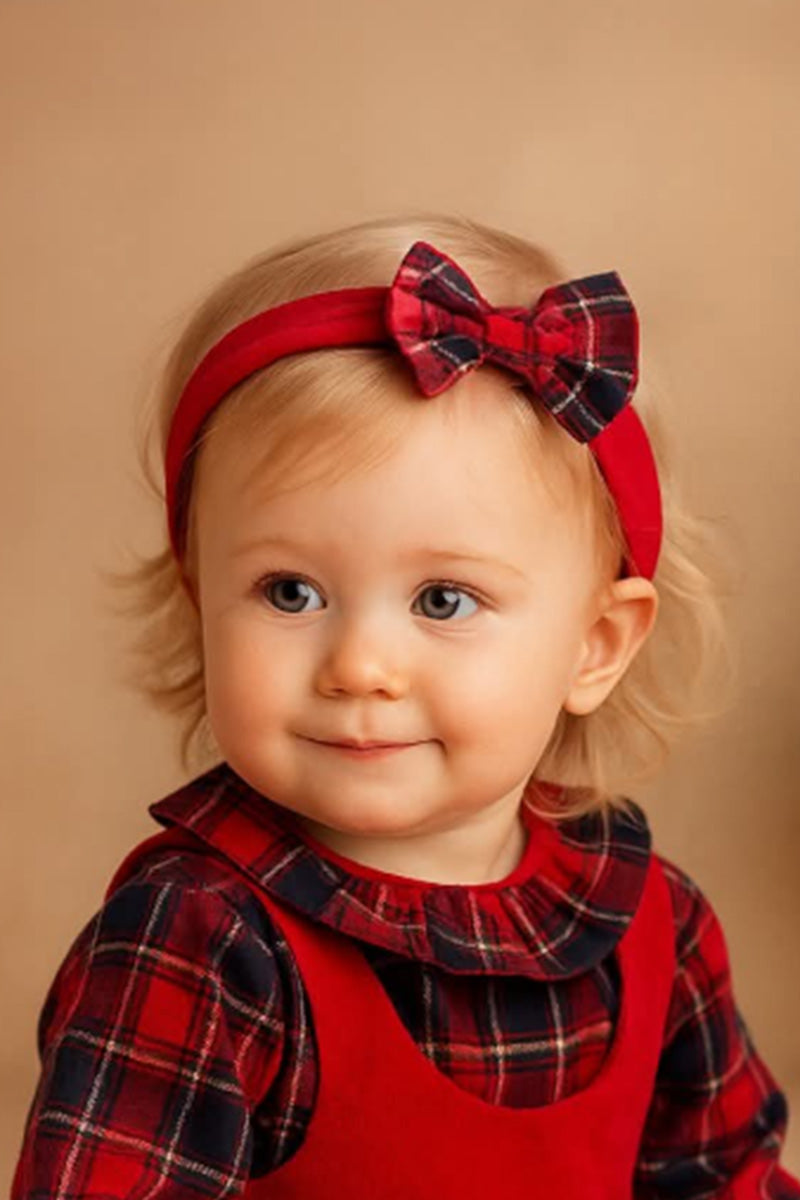 Fascia per capelli in velluto con fiocco tartan ed elastico sul retro
