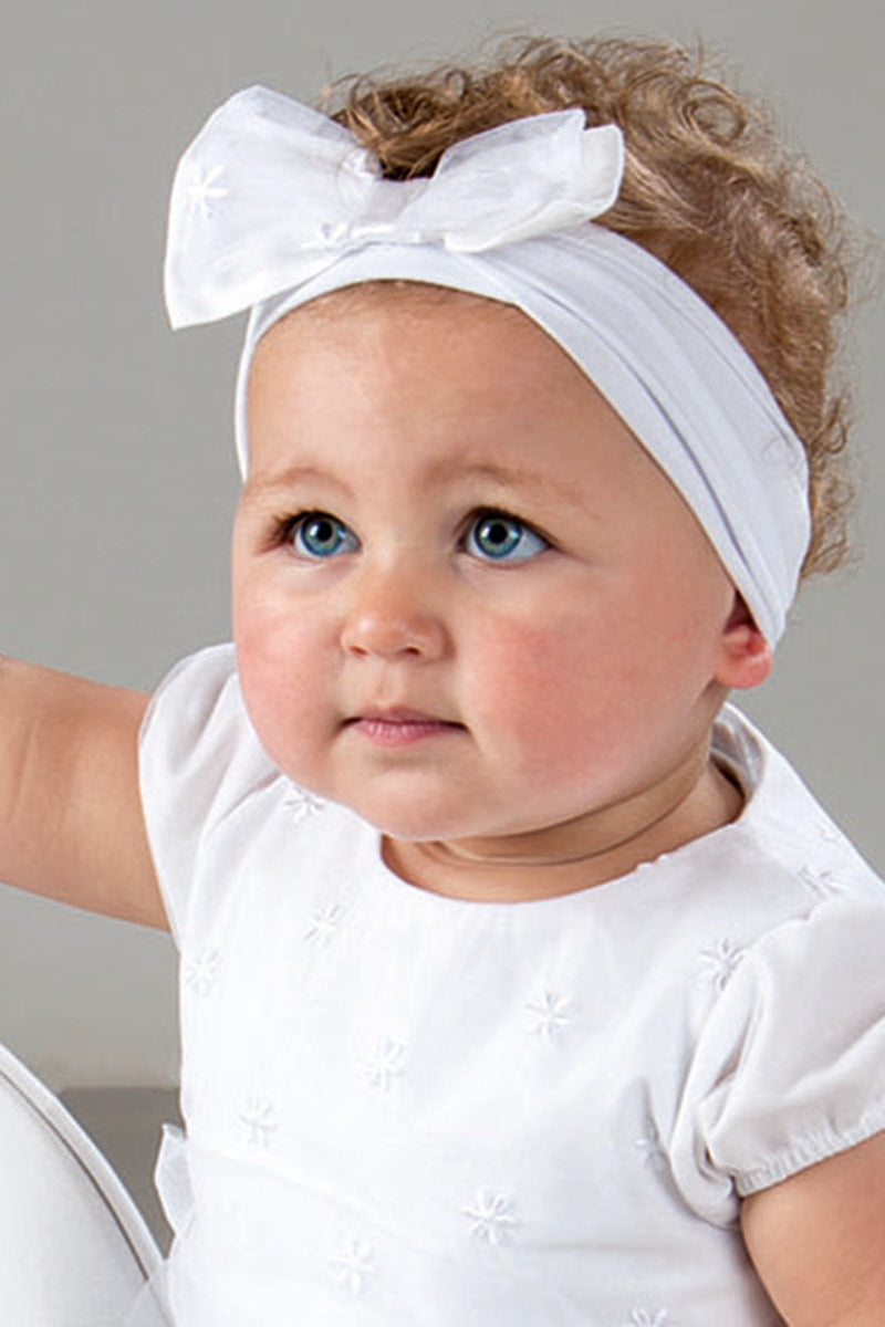 Fascia per capelli in cotone elasticizzato con fiocco in tulle ricamato
