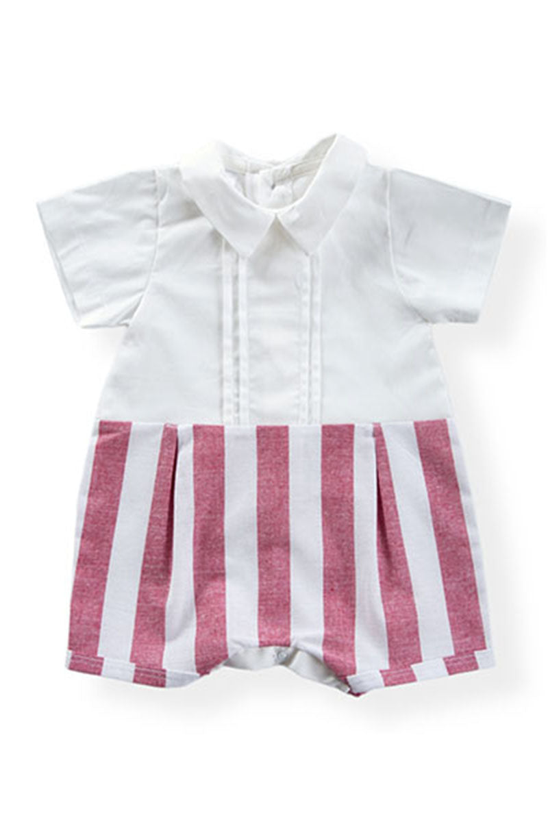 Pagliaccetto in tela di cotone con pieghette e inserto in tela effetto lino rigato