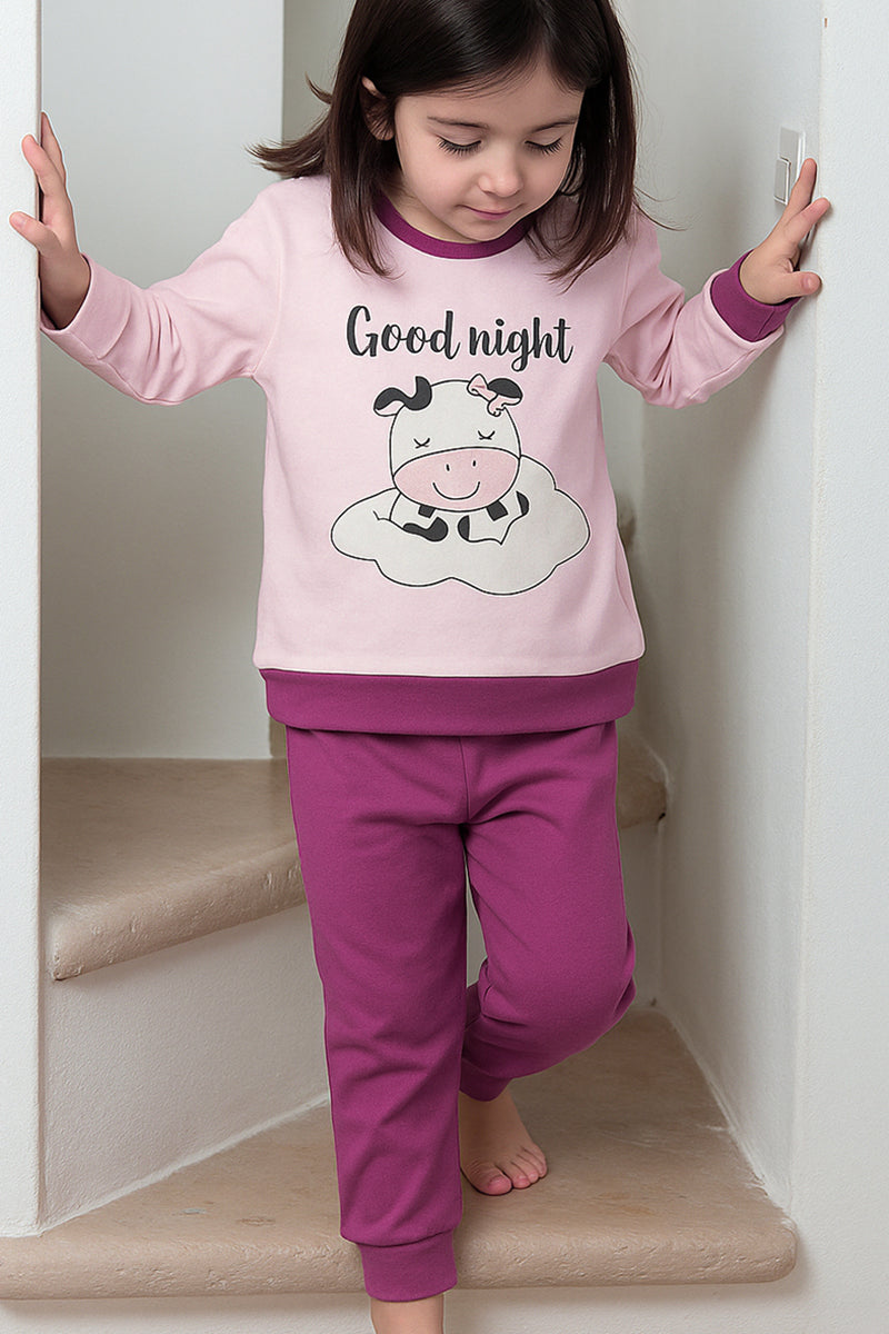 Pigiama in caldo cotone con stampa e pantalone in contrasto