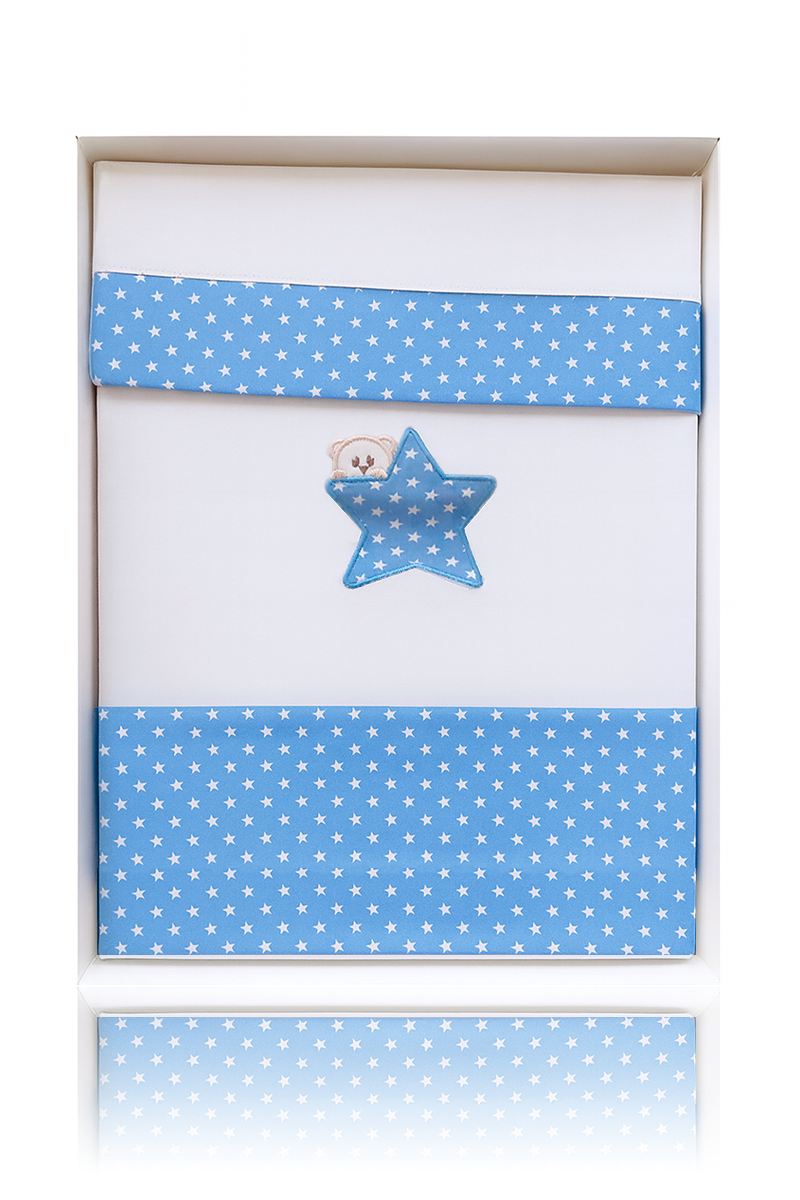 Set lenzuola 3 pezzi per carrozzina e culletta con stella e orsetto